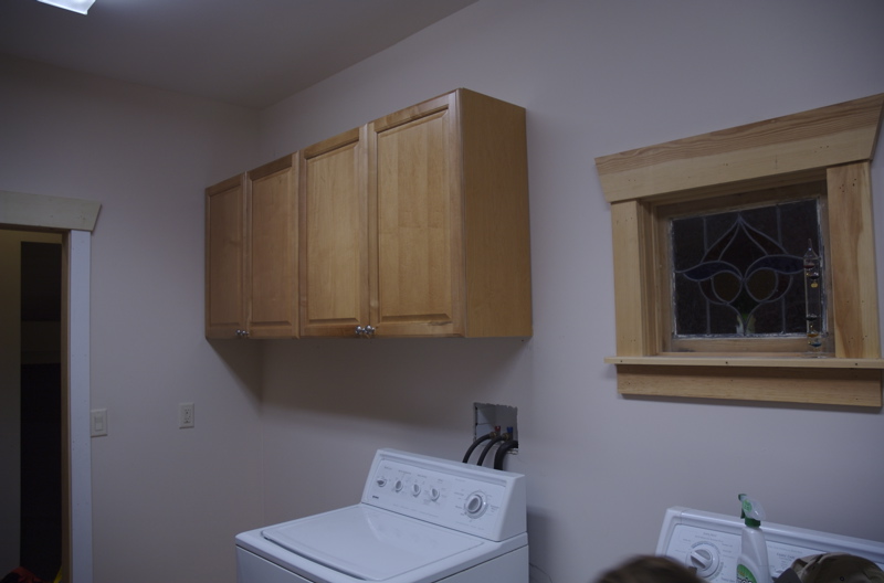 Kathy is also a happy camper this weekend as today I was able to finish hanging and putting the hardware on the cabinets in the pantry. (I had put the floor cabinets and countertop in place around the first of September. My wife has the patience of a saint…) What this means is that we now have sufficient storage in the pantry for all that stuff that used to be sitting on the floor.