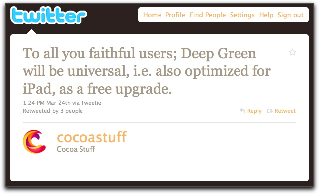 Very Nice Indeed by Jeffery Battersby | Apr 8, 2010 | iPad Can’t wait. Deep Green Deep Green. Share this: Click to share on Facebook (Opens in new window) Facebook Click to share on X (Opens in new window) X